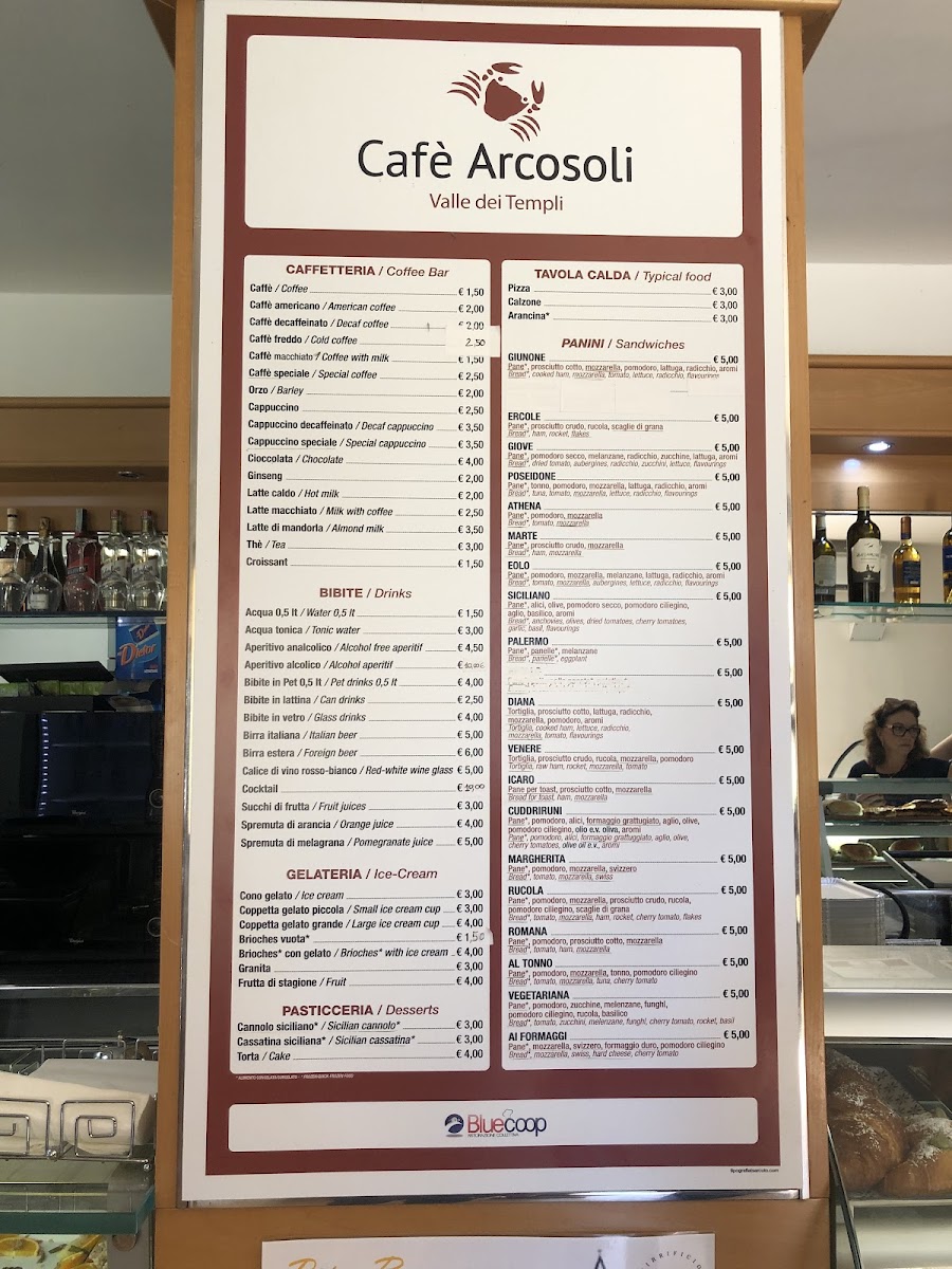 The menu at Cafe Ristoro Arcosoli offers a selection of typical café items suitable for breakfast, coffee breaks, and light meals. Visitors can expect a variety of hot and cold beverages including coffee and other drinks commonly found in local Italian cafes.